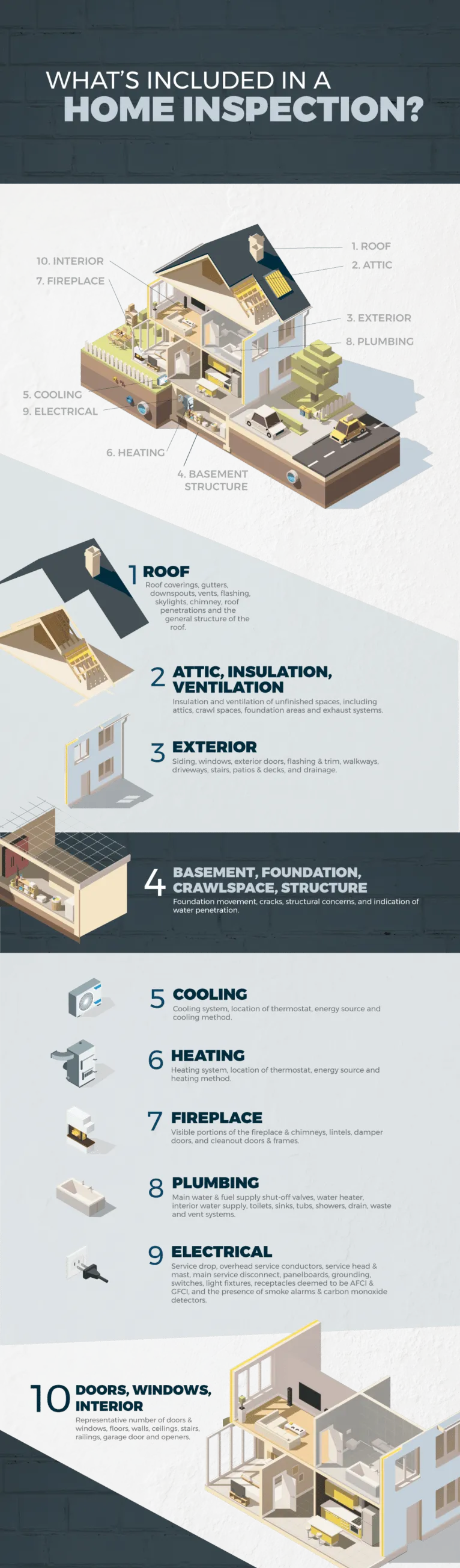 A home inspection is a non-invasive, visual evaluation of a property's major systems — like the roof, foundation, electrical, plumbing, HVAC, and more. It helps buyers understand the condition of the home before finalizing a purchase.
